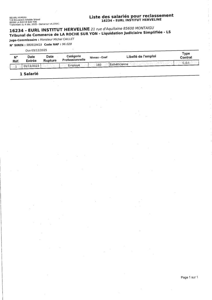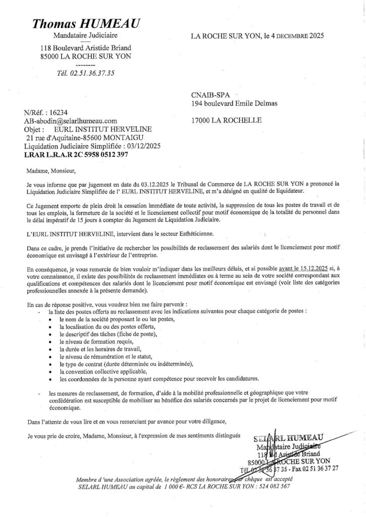 EURL INSTITUT HERVELINE 85600 MONTAIGU