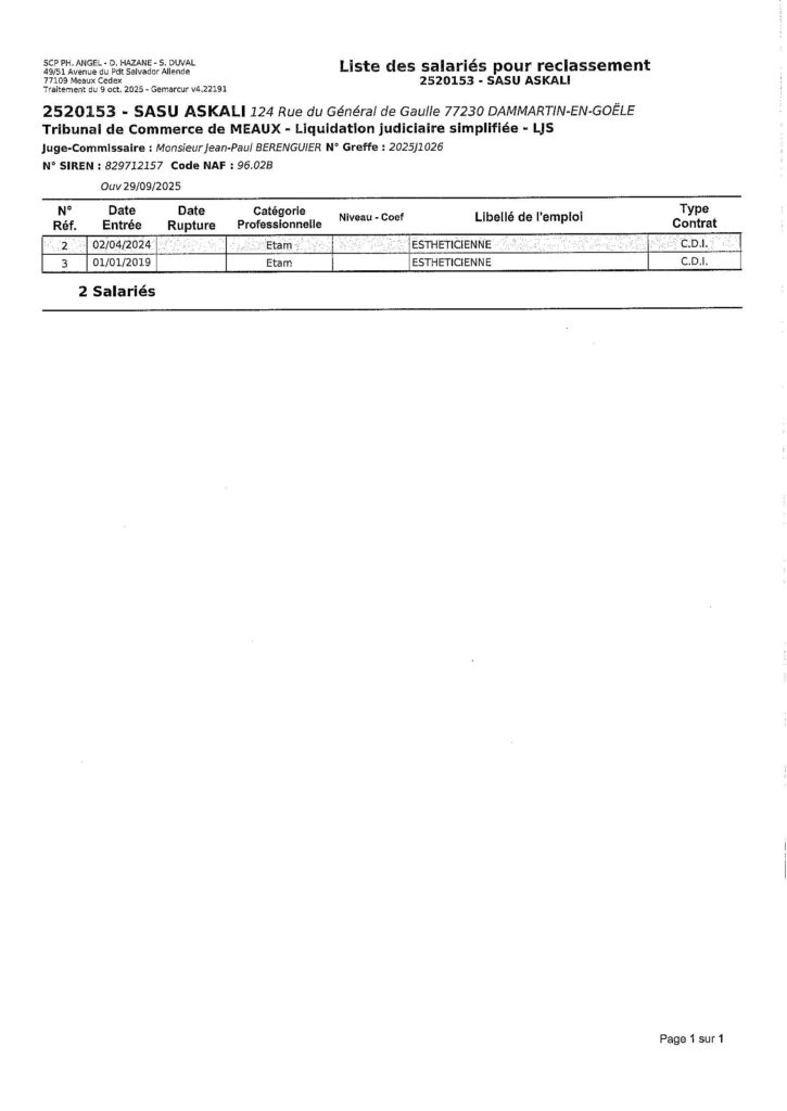 SASU ASKALI 77230 DAMMARTIN EN GROELE